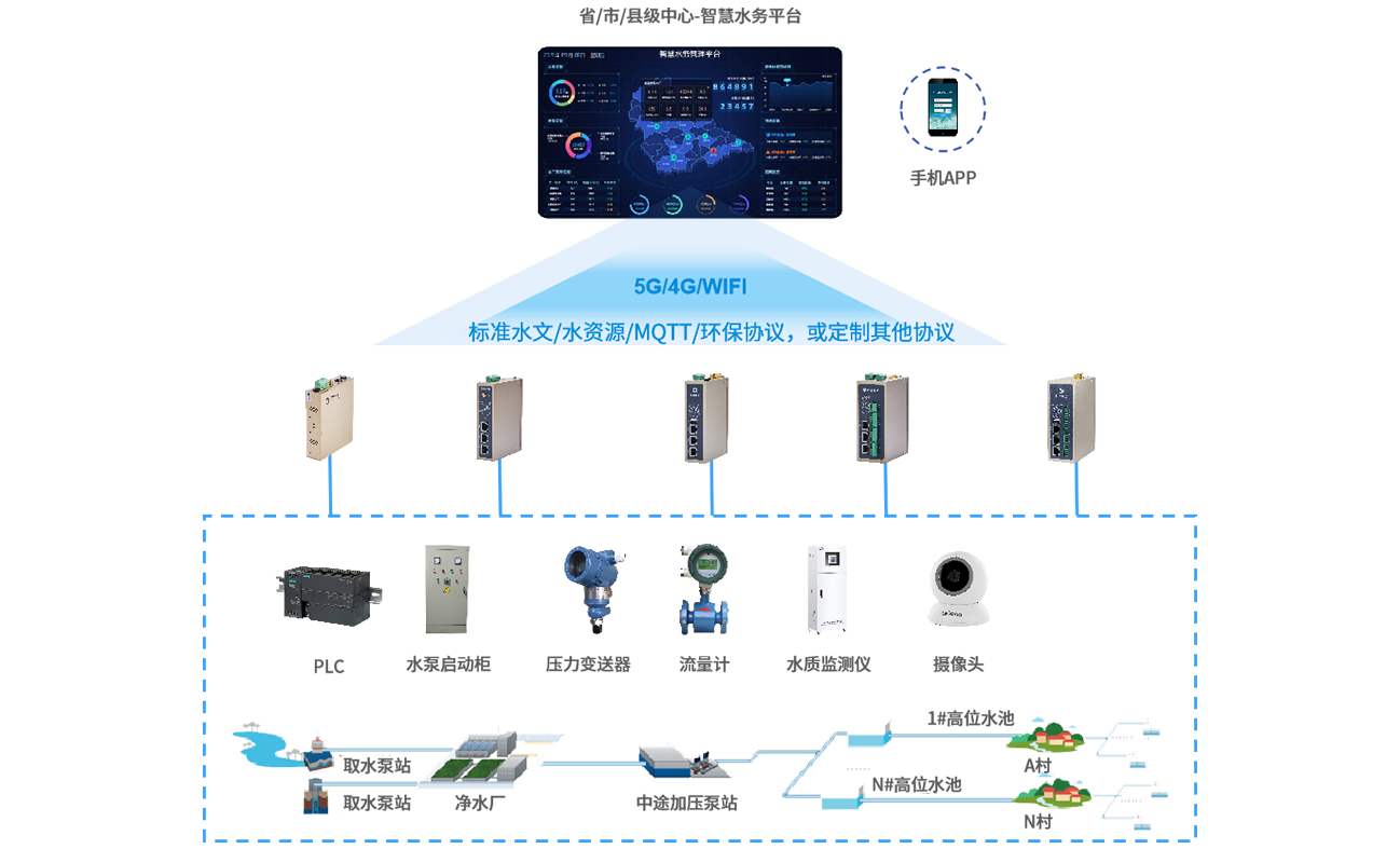 在城乡供水系统的各个关键节点(如水源地、水厂、泵站、管网等),顺利获得K8凯发(中国)的工业智能网关采集供水数据(如水量、水质、压力等)。将采集到的数据传输至城乡一体化供水信息化管理平台,平台对数据进行全面分析和处理。实时监测水质情况,根据用水量和管网压力进行优化调度,在出现紧急情况时保障应急供水。同时,平台具备用户服务管理功能,可处理用户投诉和查询,顺利获得数据分析控制运营成本。