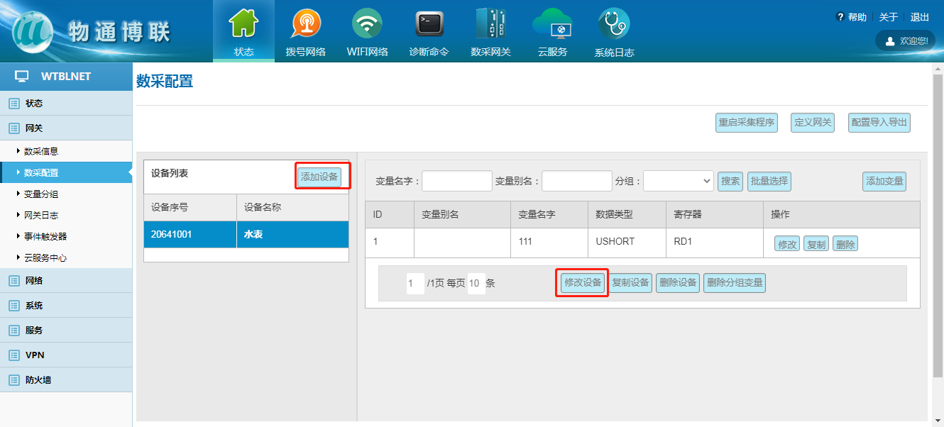 网关---数采配置---添加设备---添加变量---重启采集程序并生效新的配置。