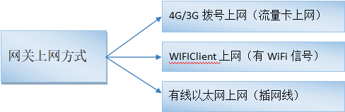 网络---可选WIFI网络、拨号网络(需要在网关通电前插入SIM卡、接好4G天线,开启拨号网络)、WAN外网。