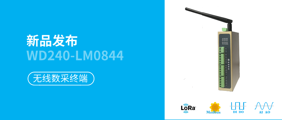 WD240-LM0844工业数传终端是一款导轨式的工业级Modbus I/O数据采集及LORA传输智能终端,支持LORA无线传输、支持IO数据采集、支持Modbus RTU协议和无线485透传等功能。