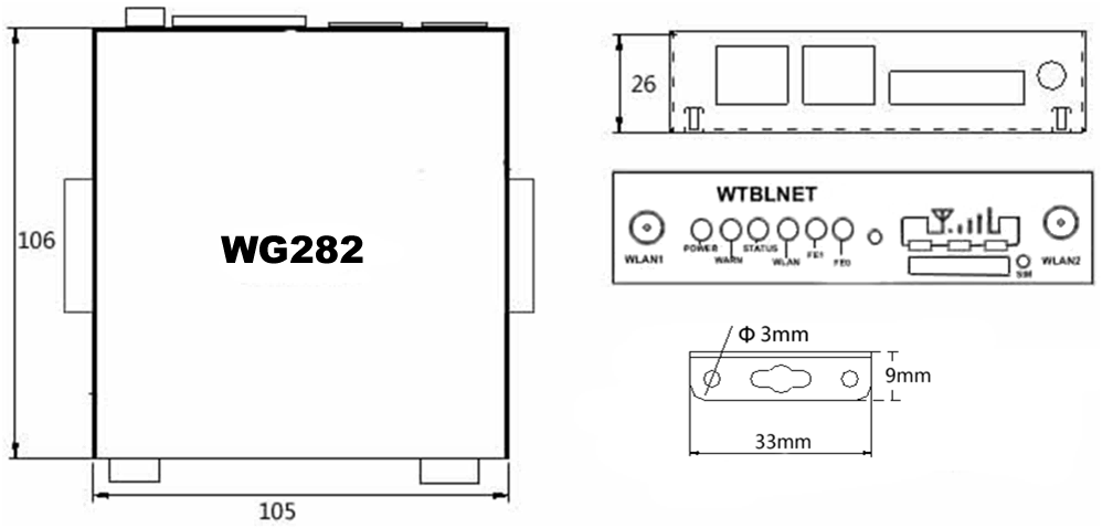 | 指示灯 | 1*6指示灯 | POWER电源灯(红)、STATUS状态灯(绿)、WARN警告灯(黄)、4G信号强度灯3个(蓝) |