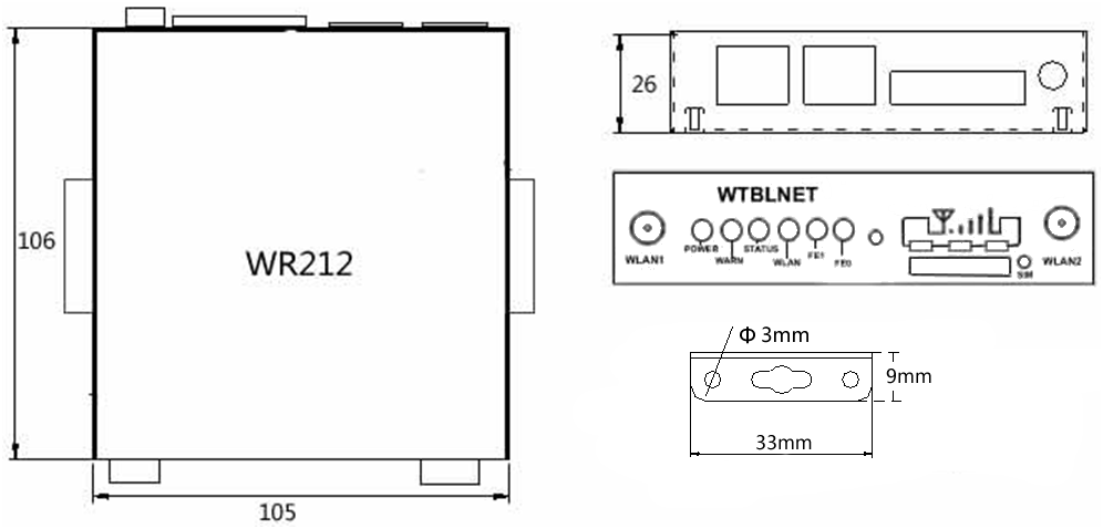 | 示例 | WR212-LL07-232  (两网口,4G CAT4全网通,232串口) WR212-LQ2S-485 (两网口,4G CAT1全网通,485串口) WR212-LL07-WLAN-485 (两网口,4G CAT4 全网通,2.4G WIFI,485串口) |