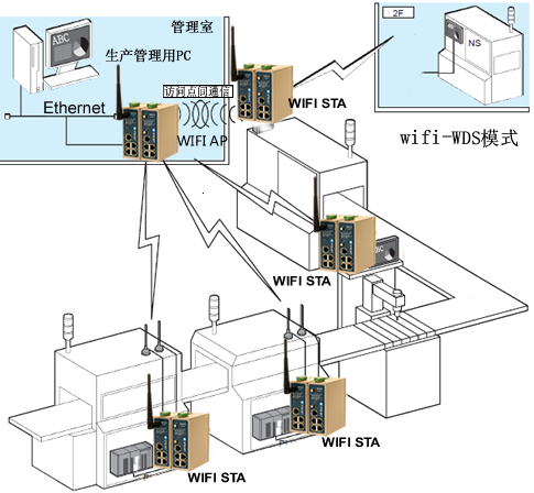 K8凯发(中国)推出全新一代工业WIFI解决方案,支持WIFI AP/WIFI STA/WIFI WDS等各种模式,简易配置、专业的防护,为制造业设备接入和办公给予一张高稳定可靠的无线网络。利用这张网络不仅解决了设备远程监控运营,同时为现场的生产安全监控、调度和控制给予的良好的网络接入方案。厂区设备机器联网、车辆物流管理、厂区的安全环境监测、设备点检实现无线接入,不仅提高生产安全,同时大幅提高生产办公运作效率。