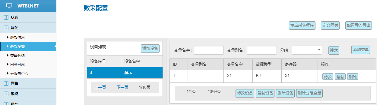 网关---数采配置---添加设备---添加变量---重启采集程序并生效新的配置