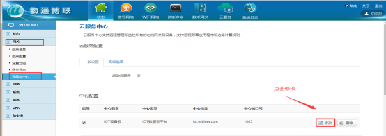 2 “云服务地址”添加OneNET平台 1、网关云中心配置