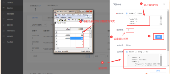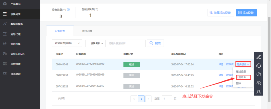 5 平台对设备的反控 可以在设备列表中选择对应网关更多操作中的下发命令