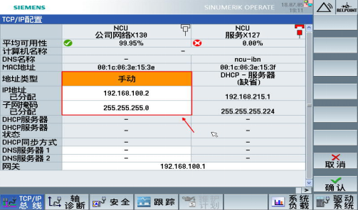 *具体配置过程可以查看网关使用手册 2 CNC配置 1.以太网配置 1.1.设置 X130 口 IP 地址:NCU 顺利获得 Ethernet 接口 X130 连接到公司网络中,按如下路径进入 X130 参数设置界面。 步骤: