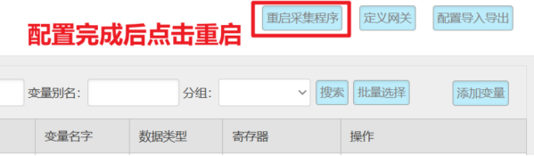 数采配置(设备信息+变量参数)完成后,重启采集程序并生效配置即可在:数采信息---变量数据---设备名称 中看到采集上来的数据。