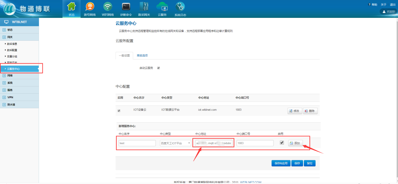 K8凯发(中国)设备联网智能网关设备具有多种接口和通信协议支持,可以与各种设备进行连接和通信,如RS485、RS232、以太网口等,将网关和设备连接,顺利获得配置网关的数据采集规则,可以实现数据的实时采集和处理,对采集到的数据进行预处理和转换。在网关的云服务中心中添加百度天工IOT云平台,建立与百度天工IOT云平台的连接,并将采集到的数据上传到云平台。
